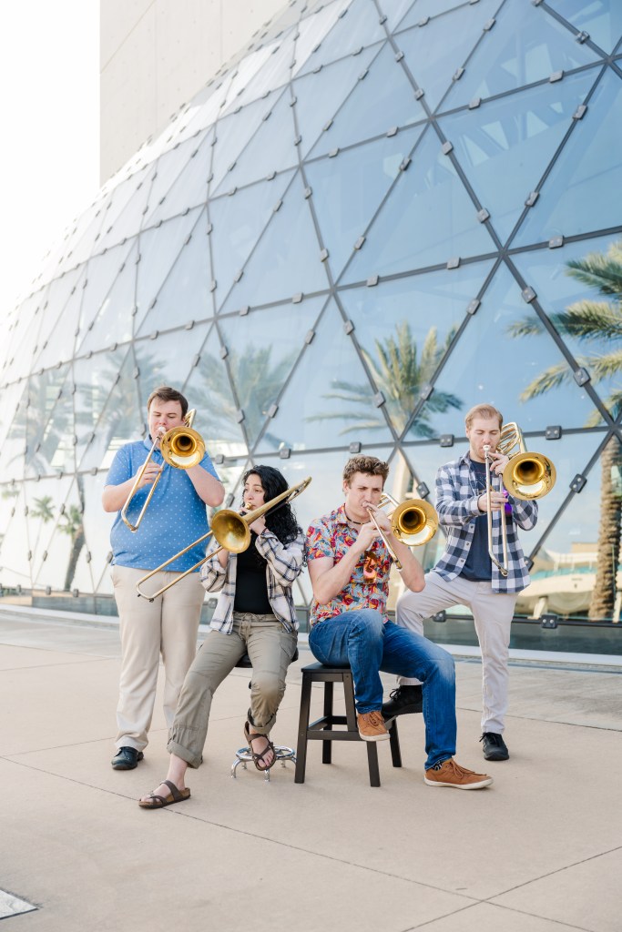 STP won the International Trombone Association’s “Kai Winding Jazz Trombone Ensemble Competition” in 2023 as well, where the group was given a featured performance at the International Trombone Festival in Salt Lake City. Since then, the group has performed at various local venues such as The Palladium and the Timucua Arts Foundation. In 2025, STP released their first single “A Nostalgia” and their debut album “Summer Bloom.”